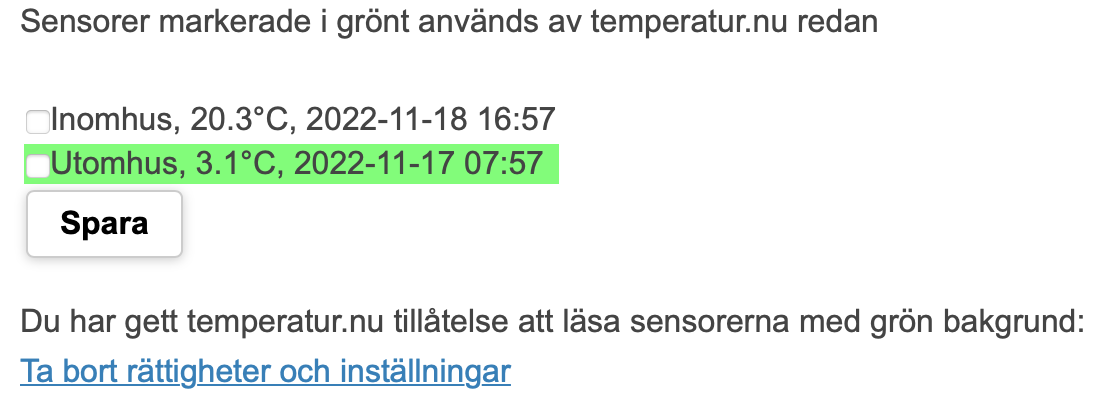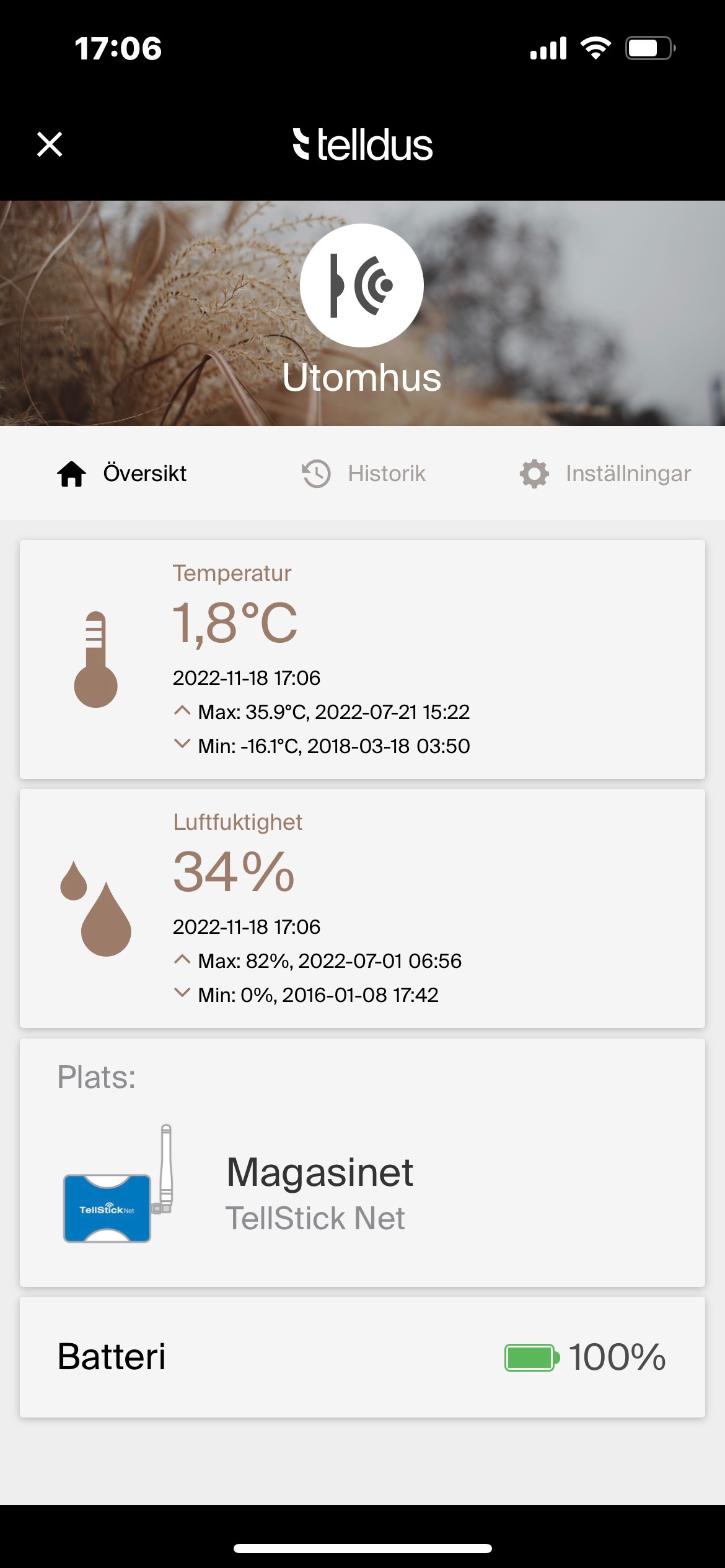 Inomhustemperaturen fungerar i min Telldus-app.