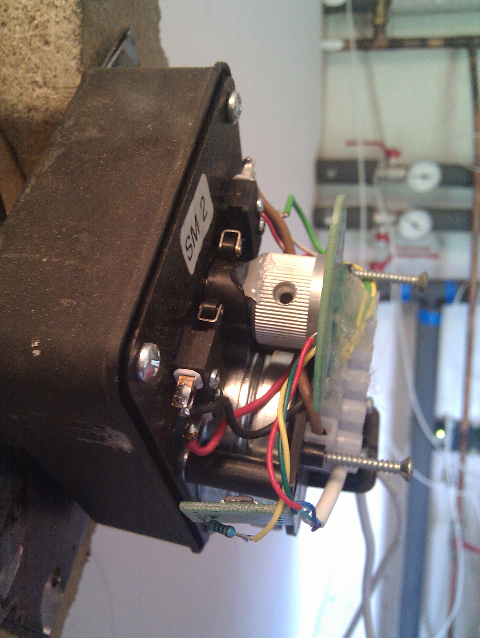 *lägesgivare som mäter läget på shunten till värmen in i huset.