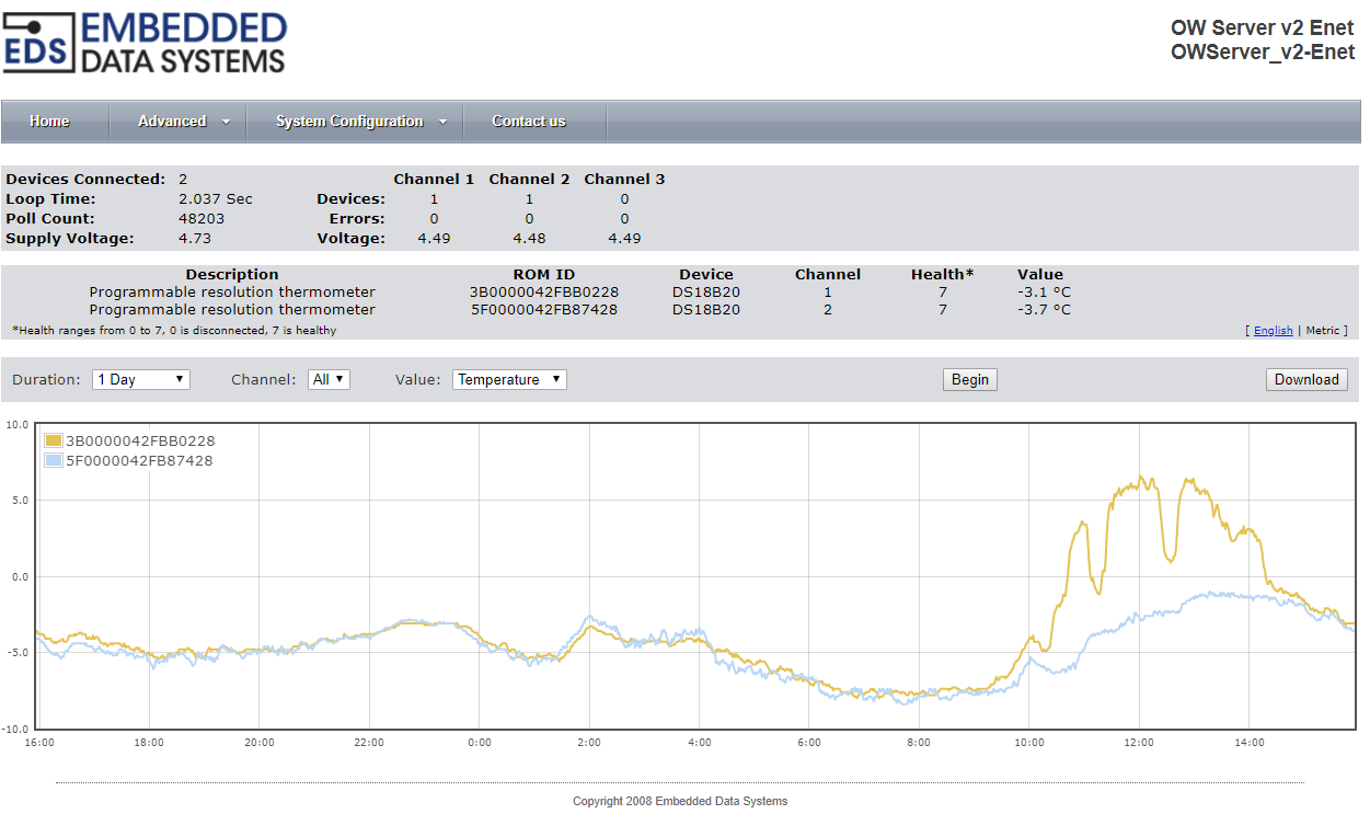 Kollade temperaturloggen som jag kan ta ut från OW-SERVER-ENET2.