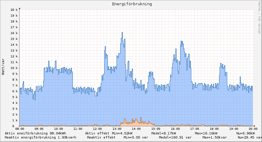 Den loggar dessutom båda lysdioderna på min elmätare (aktiv effekt & reaktiv effekt).