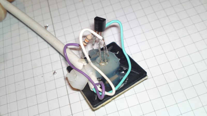 Prototypinstallation (fototransistorer, motstånd och en lite DS2423P+ på kretskort)