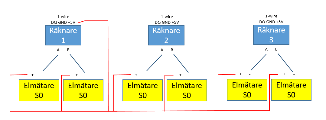 Re: Hur koppla in 3 st 1-wire räknare till 6 st S0 elmätare