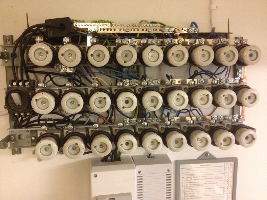 När jag öppnade elcentralen så fanns där hyggligt med plats kring huvudbrytaren och roligt nog satt där redan tre strömtänger, antar att de hör till effektvakten på pannan, men inte helt säker eller är det till JFB?