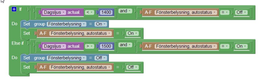 Nu kraschade hårddisken i min server när det var strömavbrott här om dagen så jag kan inte ta en screenshot på mitt event tyvärr men jag tänder när voltmätaren (ljussensorn) är under ett visst värde och släcker när den är över ett annat oavsett tid.