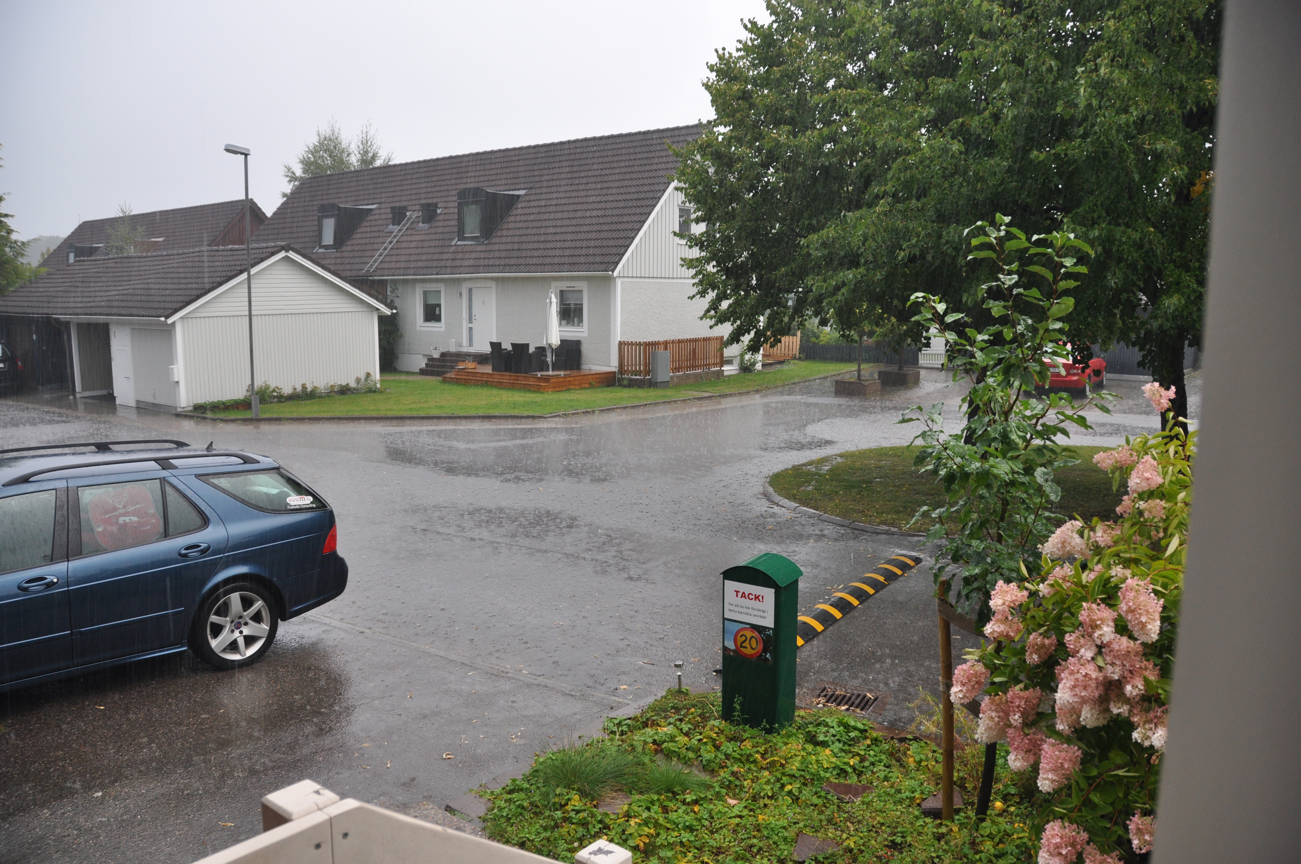 Så extremt kraftigt varade nog skuren ca 5 minuter, sedan avtog det.