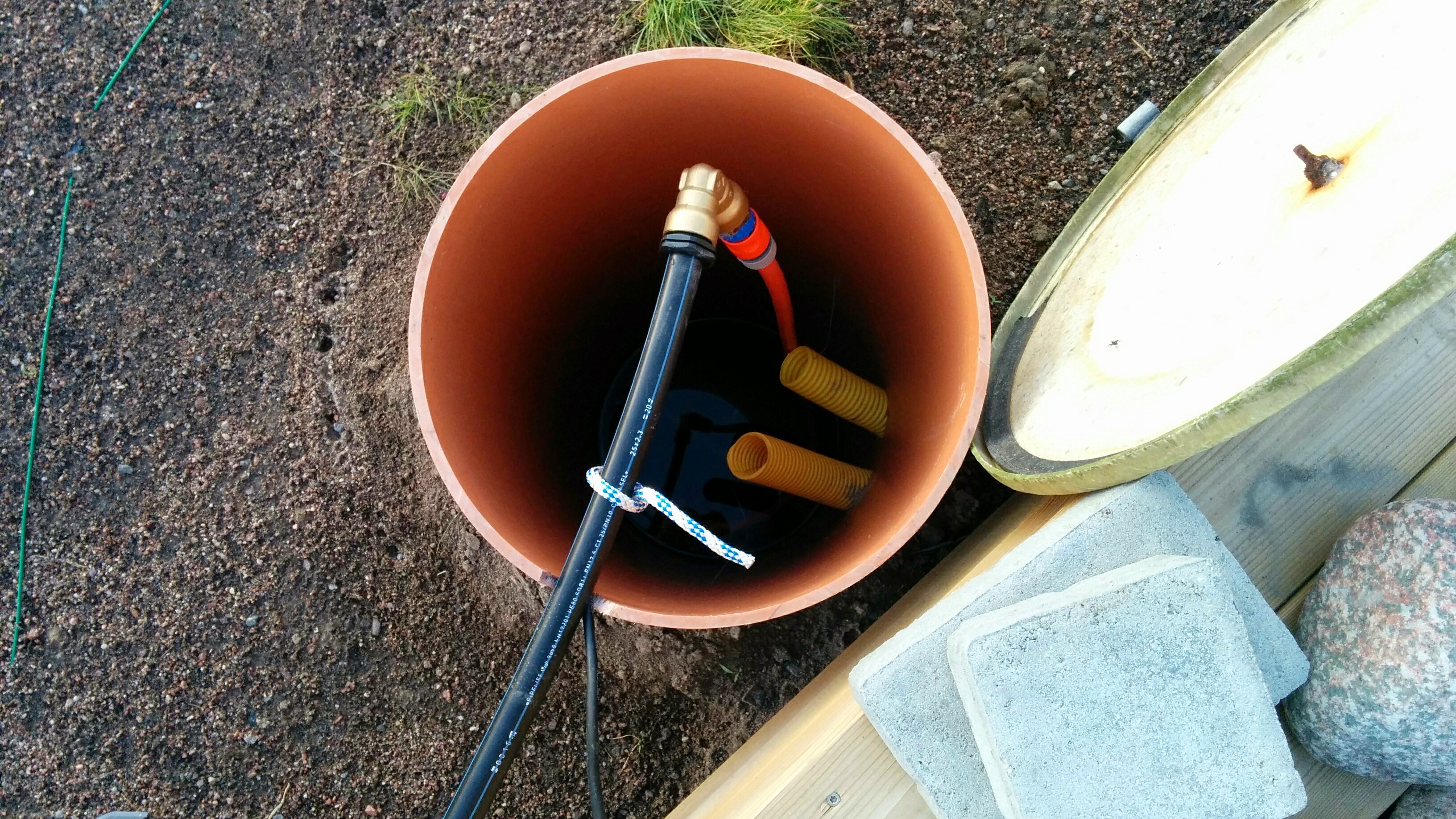 Så här ser anslutningen till tanken ut just nu. Den ska kapas ner till marknivå senare och på med ett vettigt lock med lås.