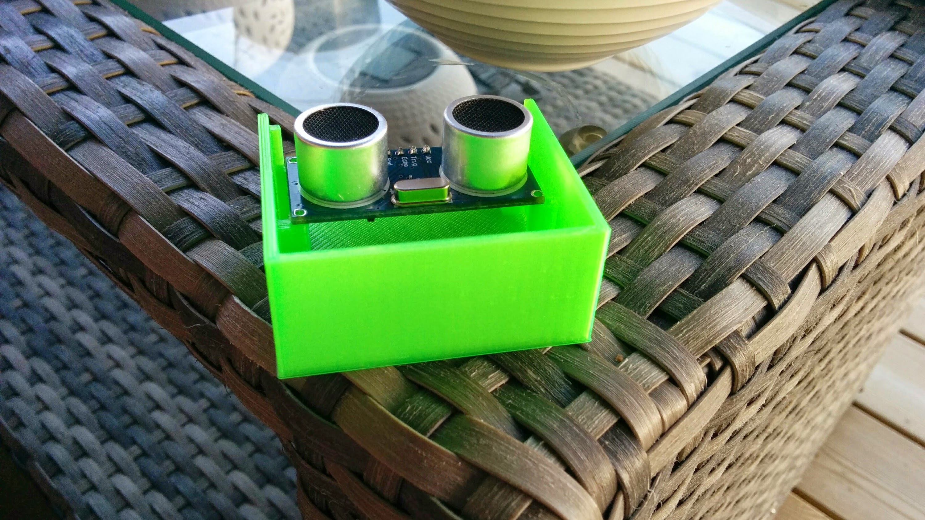 Igår teamade jag upp med en vän. Vi köpte en Arduino UNO r3, Ethernet Shield (VMA04) samt HC-SR04 och skrev koden för att få den att läsa av sensorn och leverera ett JSON-svar vid webbförfrågningar. Därefter började vi skissa på en lämplig låda för sensorn. Några krav: