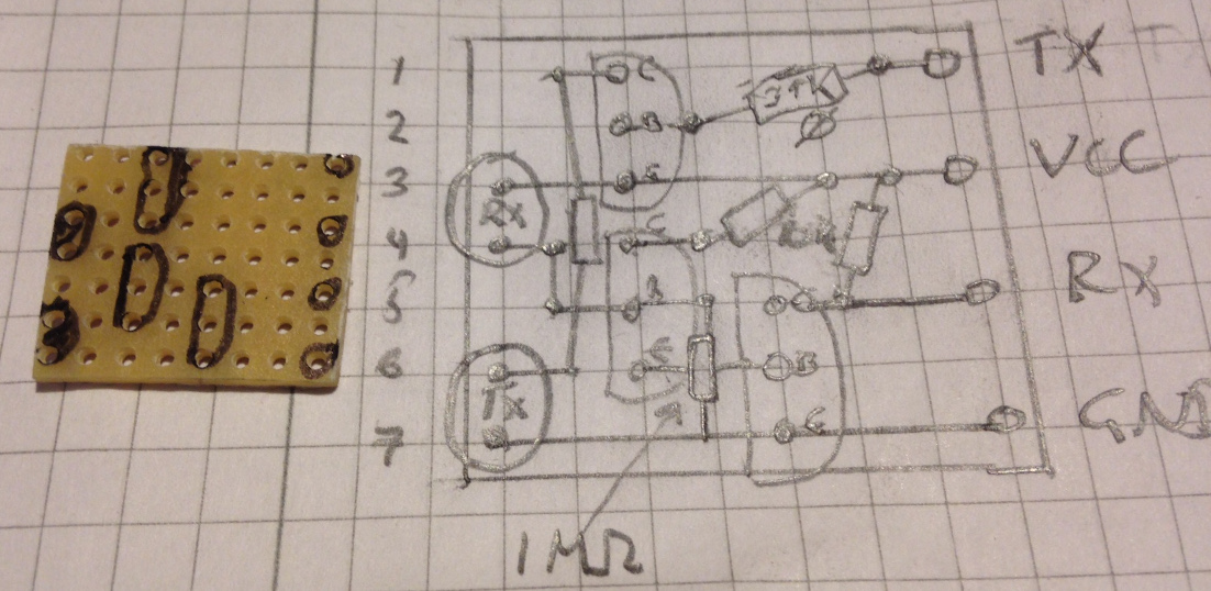 jag har ju testat sändardelen med en kamera och ser hur dioden blinkar och har också testat att sätta fingret för mottagaren och sett hur LED13 tänder så det känns ju som den är hyfsat med i matchen iallafall.
