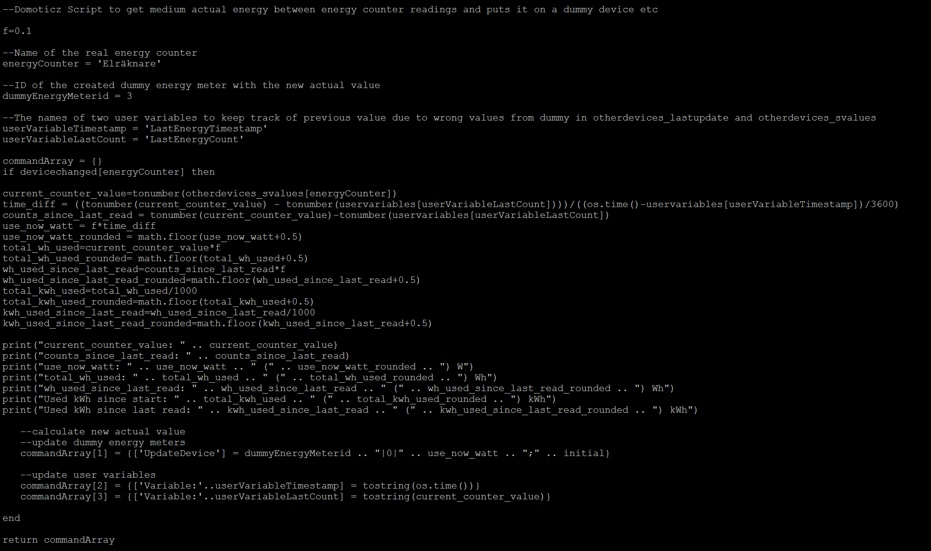 Fick det att börja fungera idag. Har bara elmätare än så länge. Så har ingen större koll på nåt av det här, varken Domoticz eller lua.