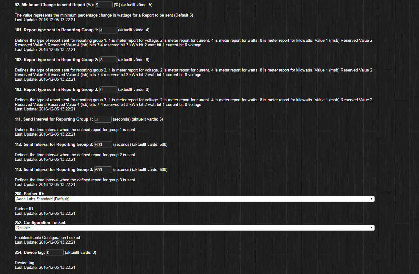 Torulf skrev:Ändra parameter 80 på brytaren till "hail" så borde det fungera med statusuppdateringen i domoticz. Energimätningen hittar du under "devices" och lägger du till den så hamnar den under menyn "utility".