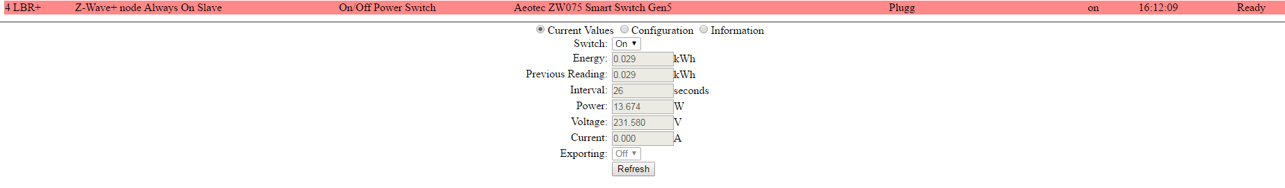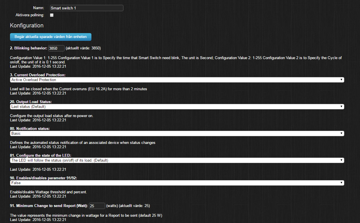 I min värld skulle kan jag kunna trycka fysiskt på switchen och så skulle domoticz uppdatera statusen men det gör den inte samt så skulle jag vilja få in energimätningen.