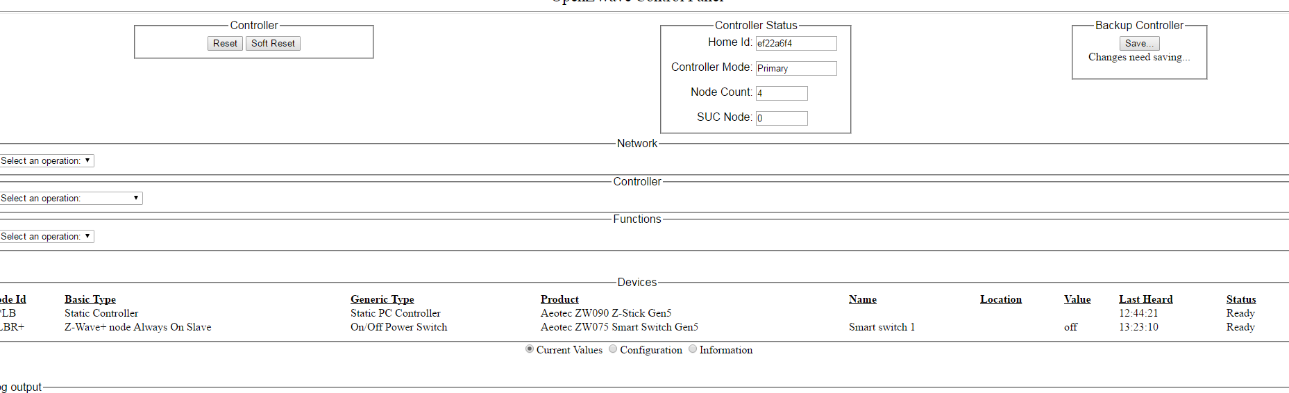 Har kört en RFXTRX ett bra tag på min Rasp 2, men tänkte för ett tag sedan ta steget till Z-wave. Köpte en Z-stick gen 5 och skulle försöka få ordning på det, men stötte på problem. Projektet åkte till sidan ett tag men nu är det aktuellt igen.