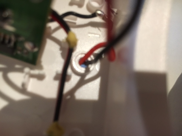 Där lödde jag fast 2 kablar. Jag hade fördelen med ett gammalt hål från gammal ringklocka.