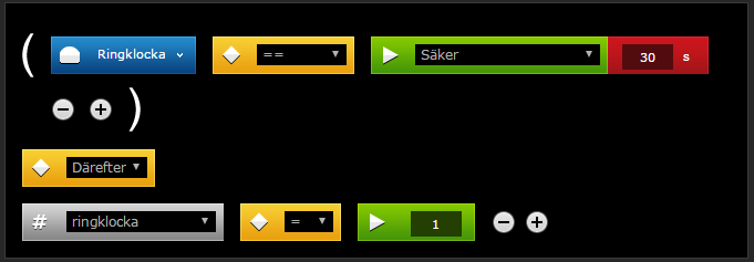 Nästa scen nollställer variabeln när sensorn är ”säker” i minst 30 sekunder.