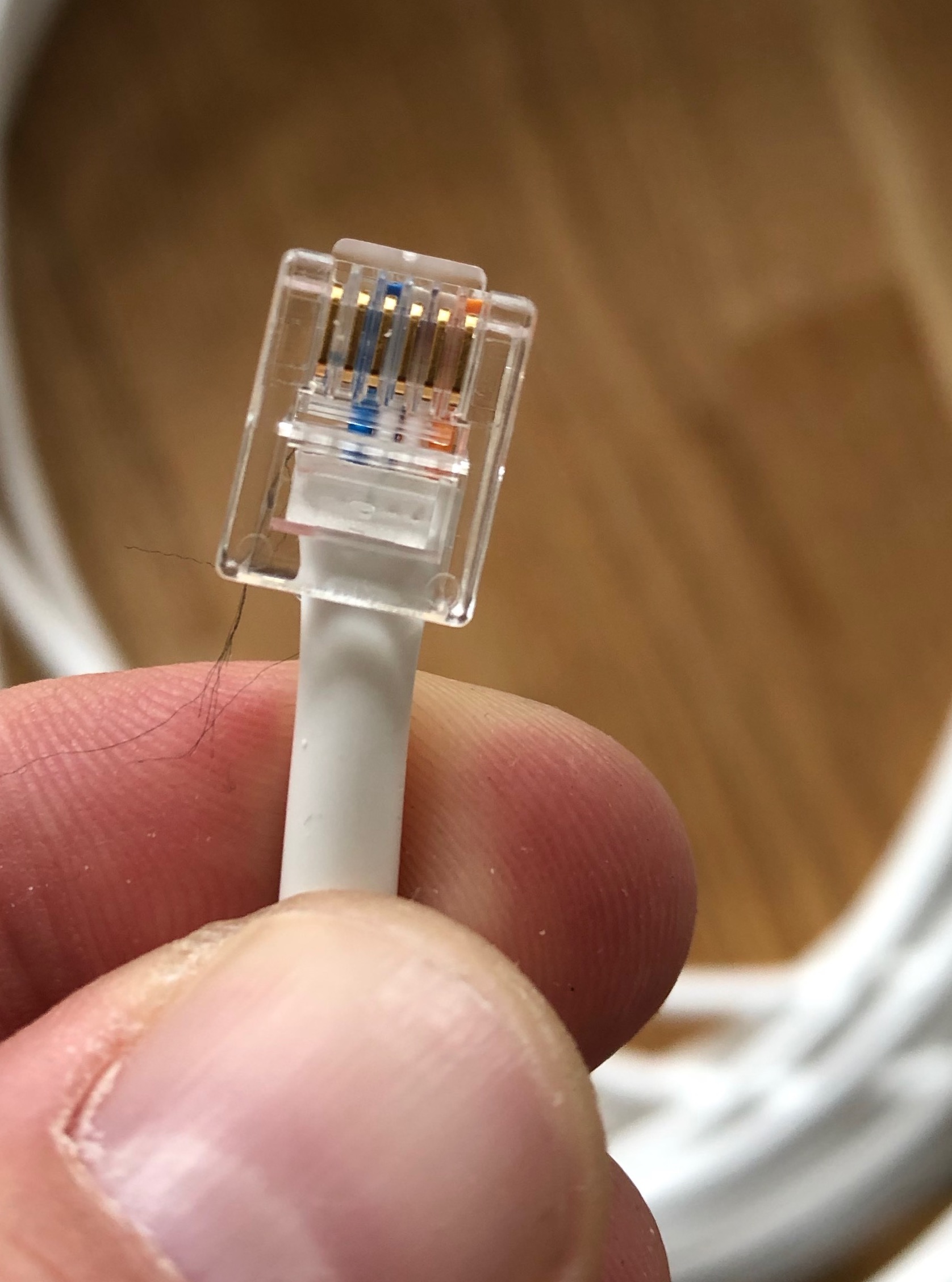 Kopplar jag upp en kabel med RJ12 i båda ändar så säger min kabelkollare att allt är ok (efter ett par försök - det är lätt att ledarna hamnar i fel fålla)
