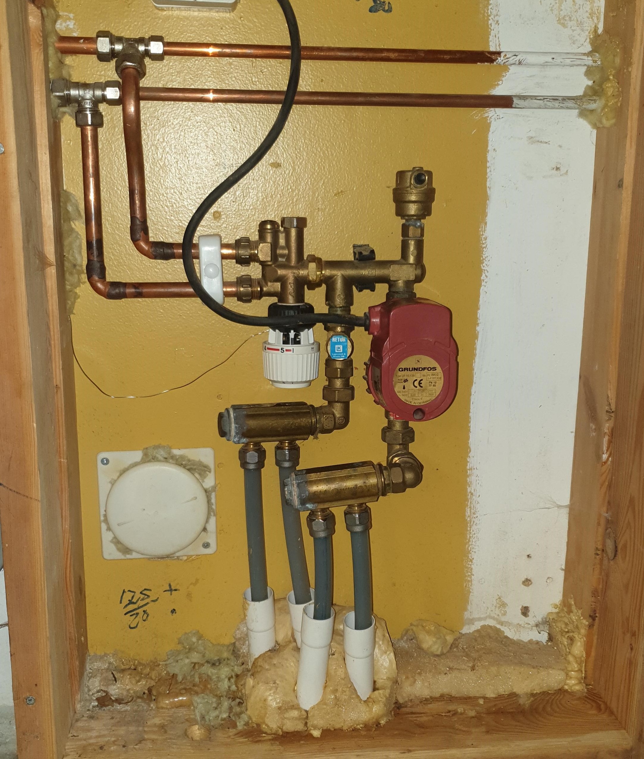 Bild på inkoppling av värmeslinga mot värmesystem