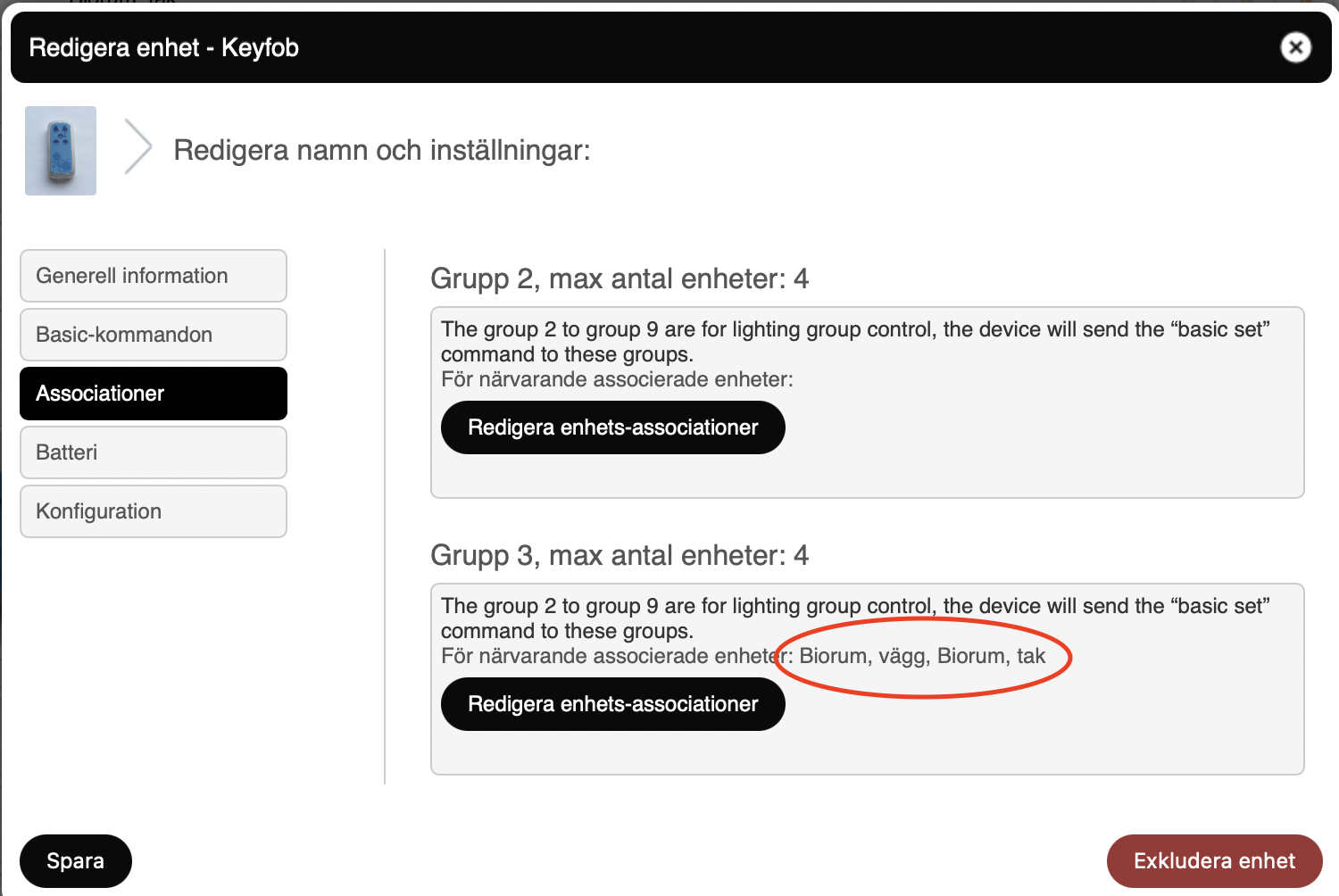 Nu försöker jag styra dom två dimmerenheterna från Zipato Keyfoben men får absolut inget att fungera förutom att Keyfoben går att addera/ta bort till/från Z-wave nätet, snällt dyker upp med associationsgrupper i Telldus Live, accepterar att jag lägger i o ur Qubino-enheterna i dess grupper samt att keyfoben blinkar rött o grönt när jag går igenom enkelklick (on) och dubbelklick (off) för dom 2 x 4 grupperna/knapparna.