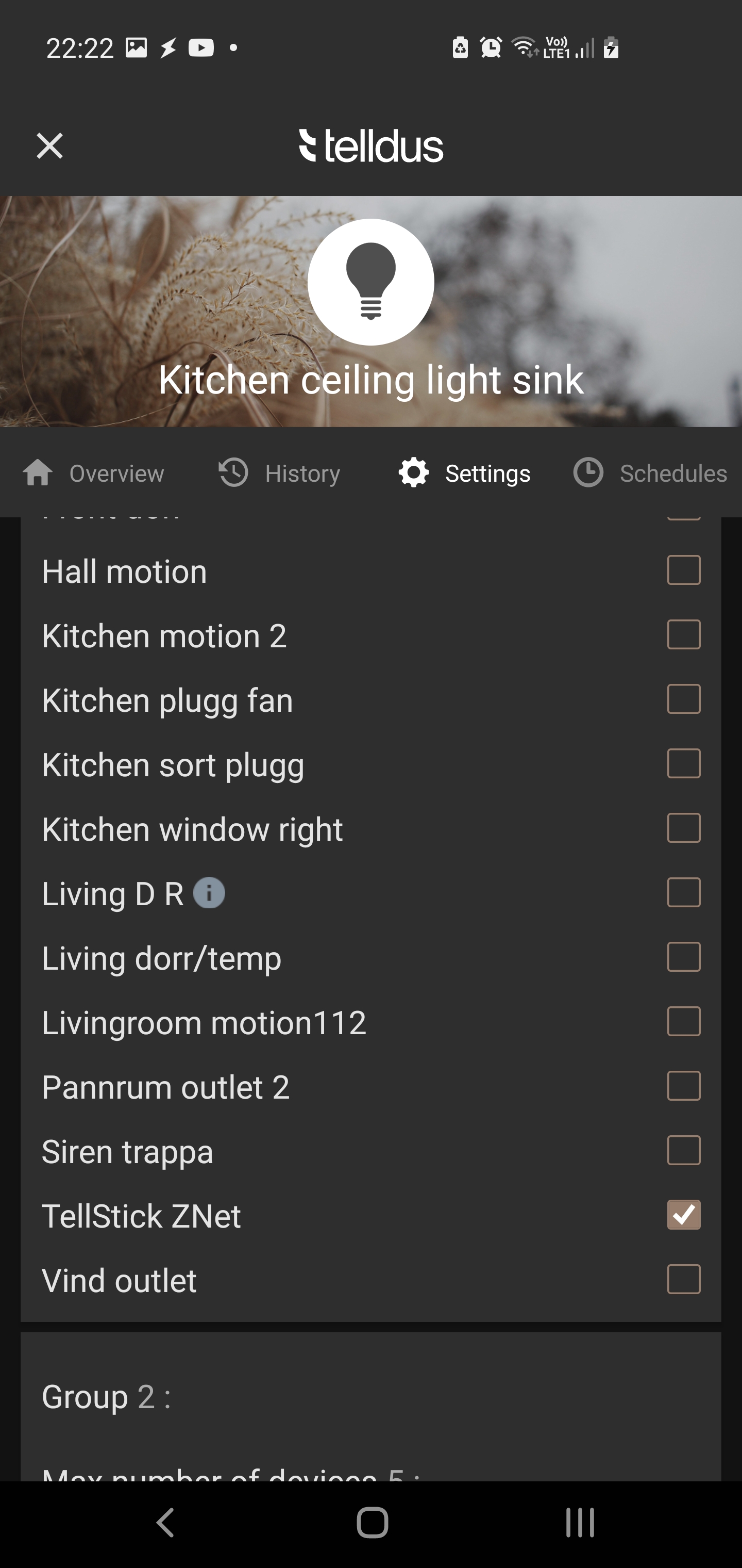 skynet skrev: 06 sep 2021, 22:47 Screenshot_20210906-225620_Telldus Live! Mobile.jpgFungerar bra men när jag skapade en automation i ha och telldus och associated switch i grupp 2.