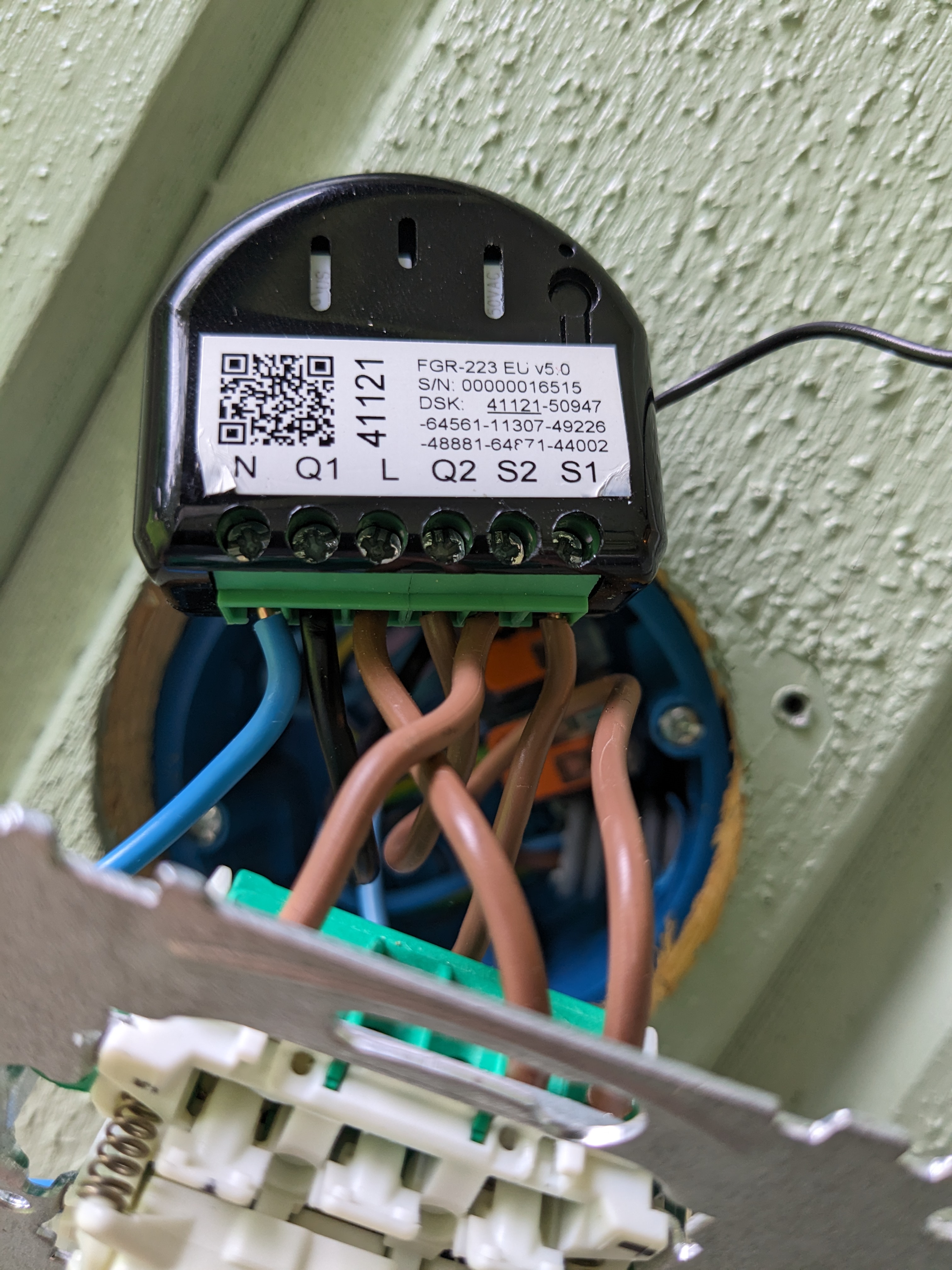 När Roller Shutter 3 är installerad fungerar det bara att ta ner markisen, den andra knappen på strömbrytaren får liksom ingen funktion. Installationen av Roller Shutter 3 är gjort enligt manual, så borde inte vara några konstigheter där (synkning mot min Homey har också fungerat bra). Vid mätning på Roller Shutter 3 så ger S1 ström växelvis till Q1 OCH Q2. Det borde väl bara vara S1 --> Q1 och S2 --> Q2? Kopplar jag bort Roller Shutter 3 fungerar vanliga strömbrytaren åter som det ska.