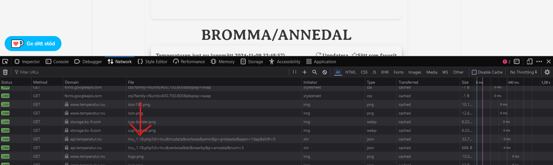 Men om man granskar de API anrop som t.ex. https://www.temperatur.nu/annedal gör så ser man anrop som dettaAktuell version är 1.17 – tidigare versioner ska inte användas i nya applikationer.