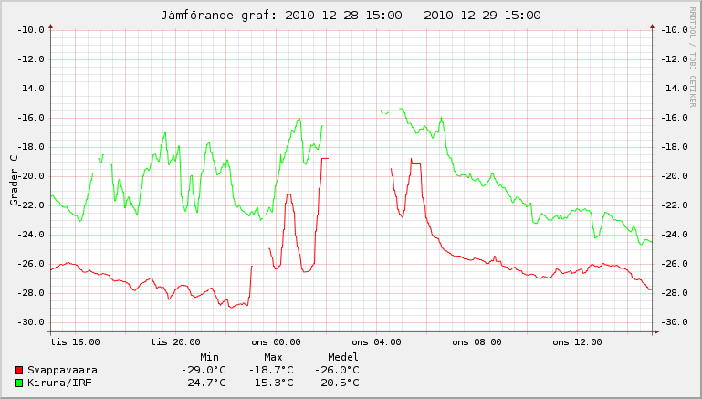 Och såhär ser det ut om jag jämför med mätstationen som är hos IRF i Kiruna: