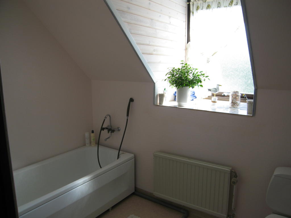 Badrummet är renoverat 2000, då man troligtvis bytte golvmattan och satte väv (som man målade ljusrosa!). Allt porslin är orginal från 1979. De tidigare ägarna piffade iofs till lite i och runt fönstret vilket de skall ha en eloge för.