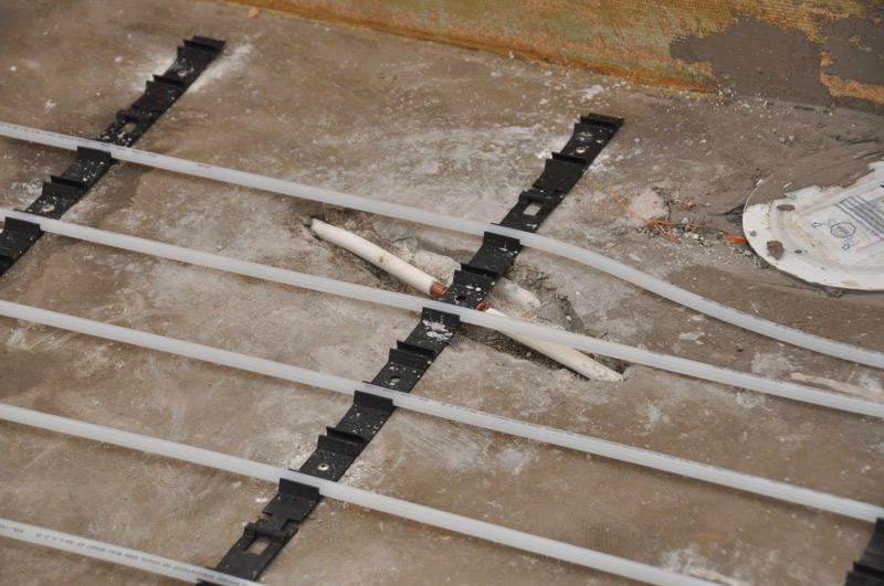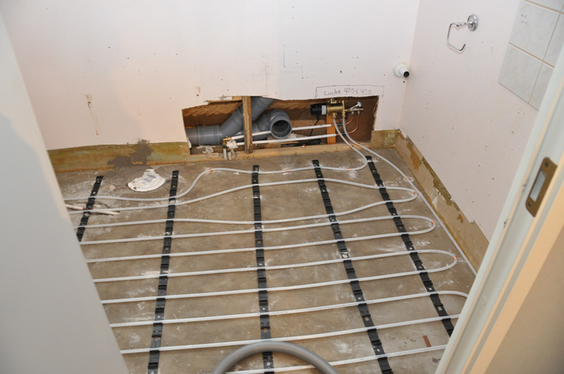 Rörmokarna lyckades pricka ett vattenrör i golvet när de skulle fästa golvvärmeslingorna. Jag satt på bottenvåningen, och hör en av killarna rusa ner för trappan samtidigt som han ropar "Vi måste stänga av vattnet!".