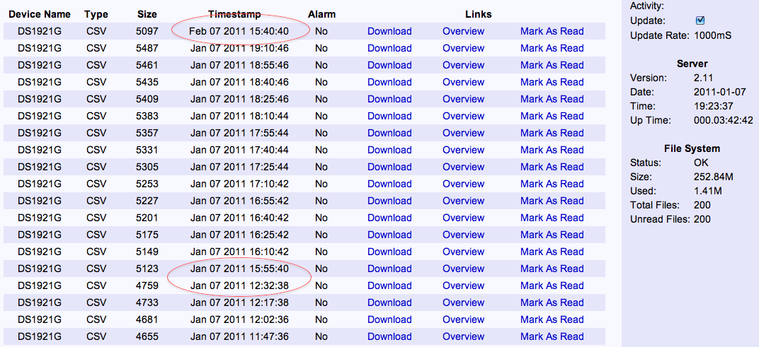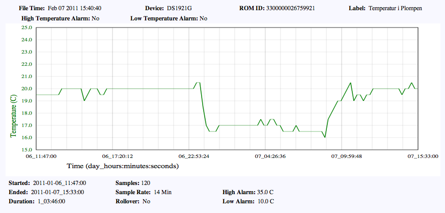 Om rollover inte är ikryssat borde mätningarna ske tills minnet är fullt. Testar nu, men det tar 1 dygn och 10 timmar att fylla en DS1921G med sample rate på 1 minut...