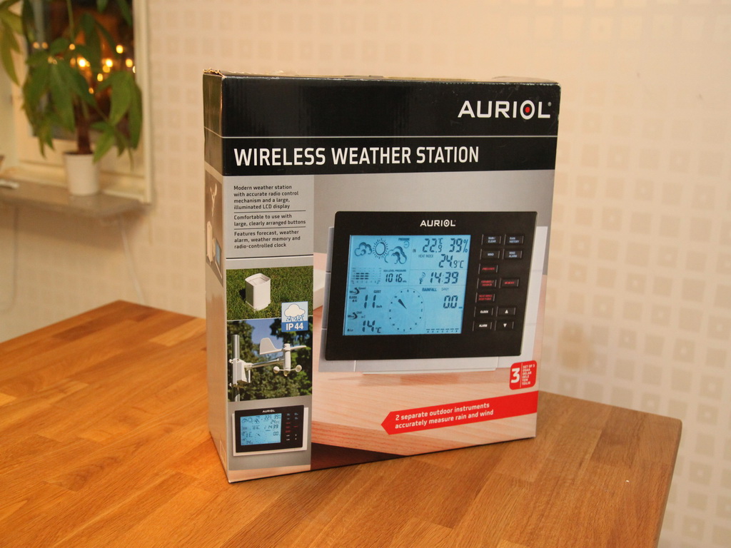 Mäter trådlöst ute temperatur, vindriktning, vindhastighet och regnmängd samt inne temperatur och lufttryck och beräknar en prognos för kommande väder.