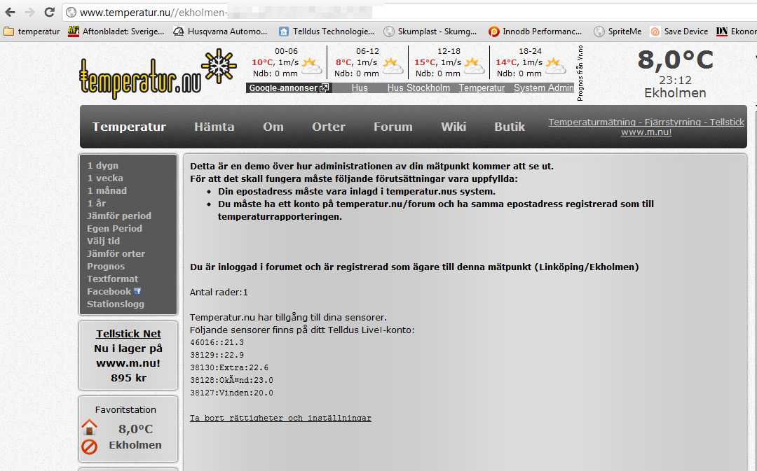 *Skapat en egen administrationssida som kräver inloggning kopplat mot forumet. Är det samma epostadress i forumet och i temperatur.nu databasen kan man "administrera" sin mätpunkt så tillvida att det går att ge temperatur.nu tillåtelse att hämta information från Telldus Live.
