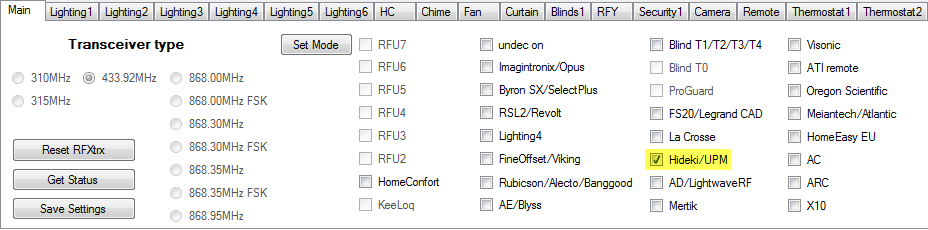 Enligt m.nu kan RFXtrx433 ta emot signaler från några UPM givare, men inte styra/skicka till UPM?