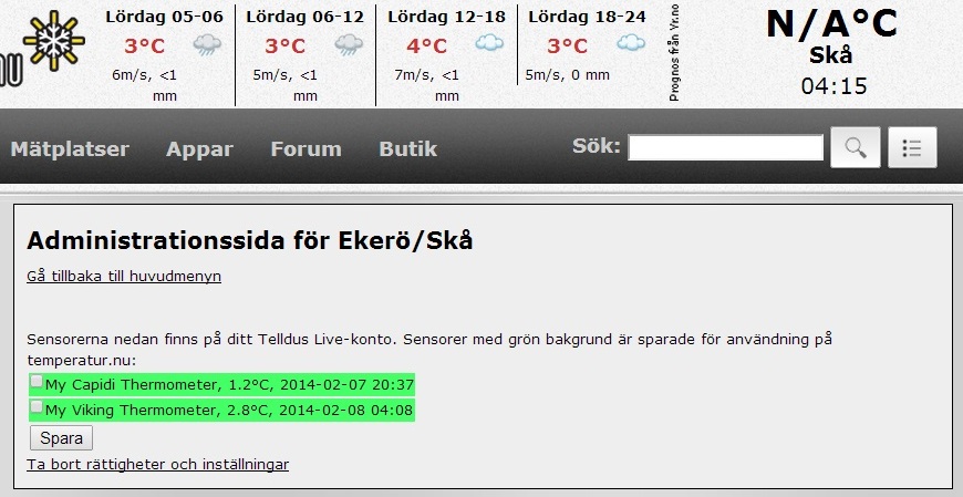 http://www.temperatur.nu/<kortnamn>-egen_admin.html, där <kortnamn> är det alias din mätpunkt har på temperatur.nu. På adminsidan för din mätpunkt kan du även ändra hur snabbt dessa varningsmail och SMS skall skickas ut.