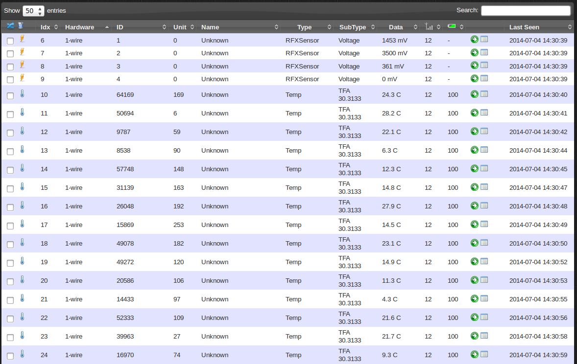Sitter och testar Domoticz, men när jag aktiverat 1-wire så tycker jag det ser skumt ut, udda ID'n vet inte hur RFXsensor kom med i bilden? Någon som kört 1-wire/OWFS med Domoticz?