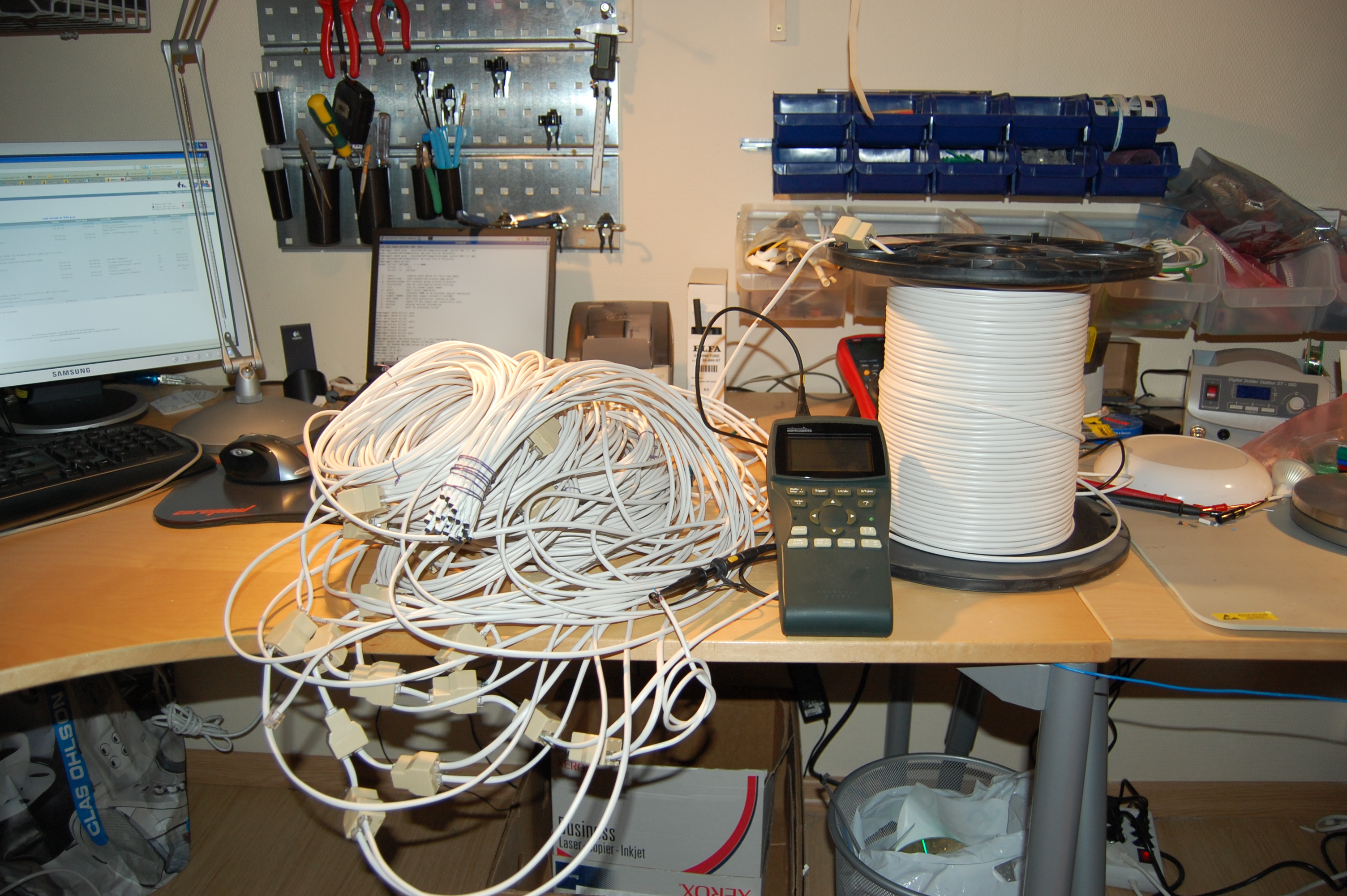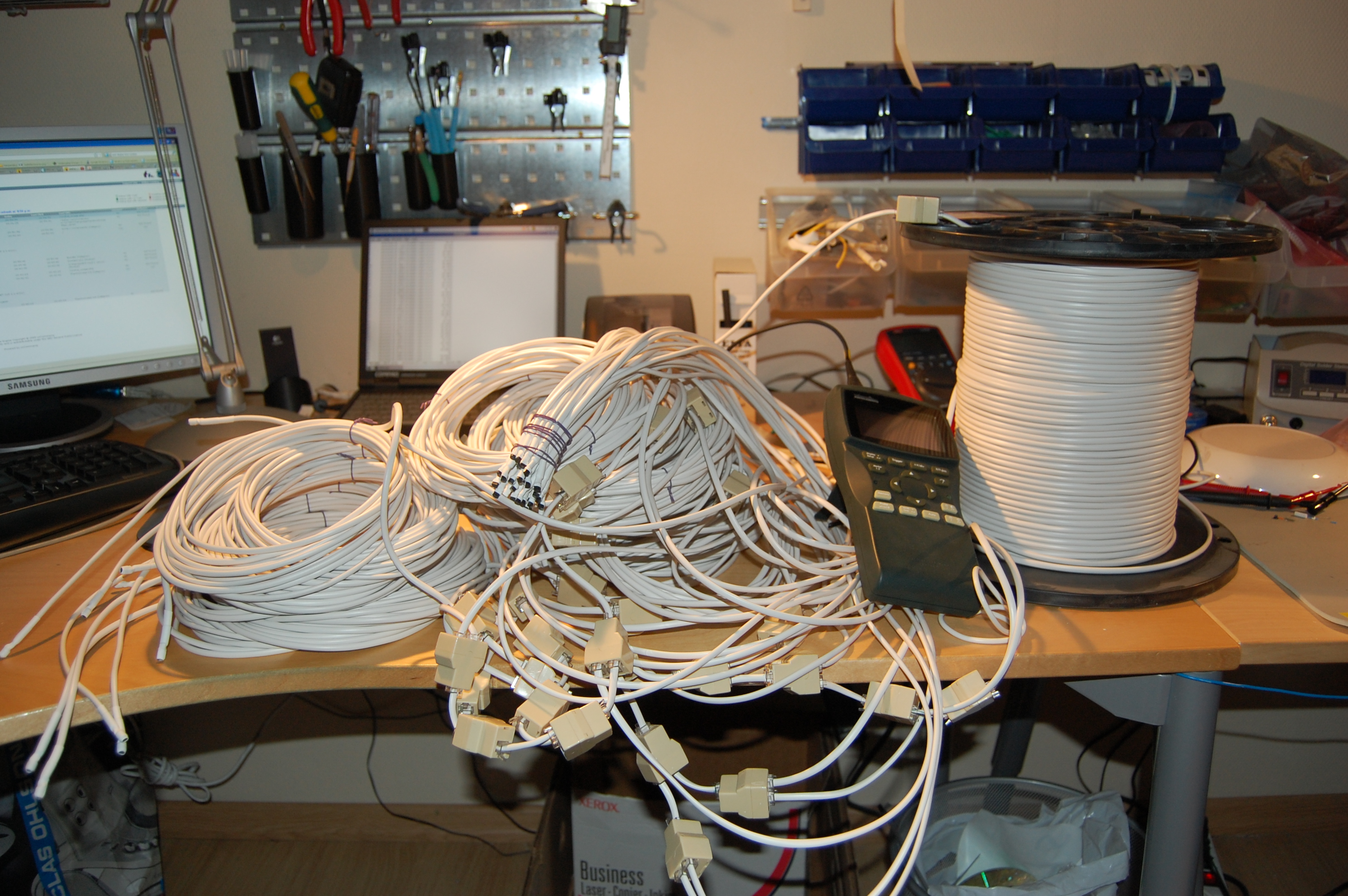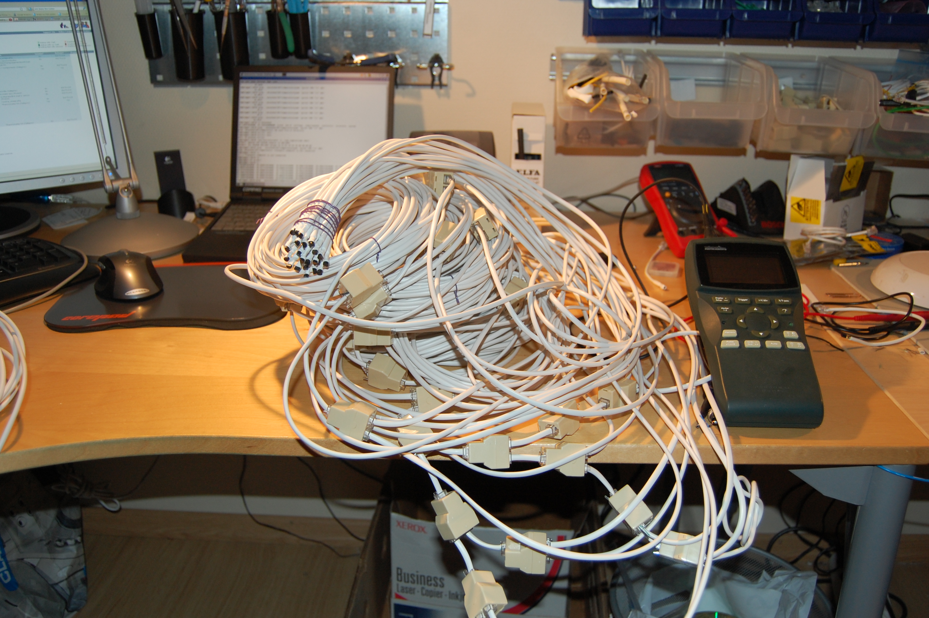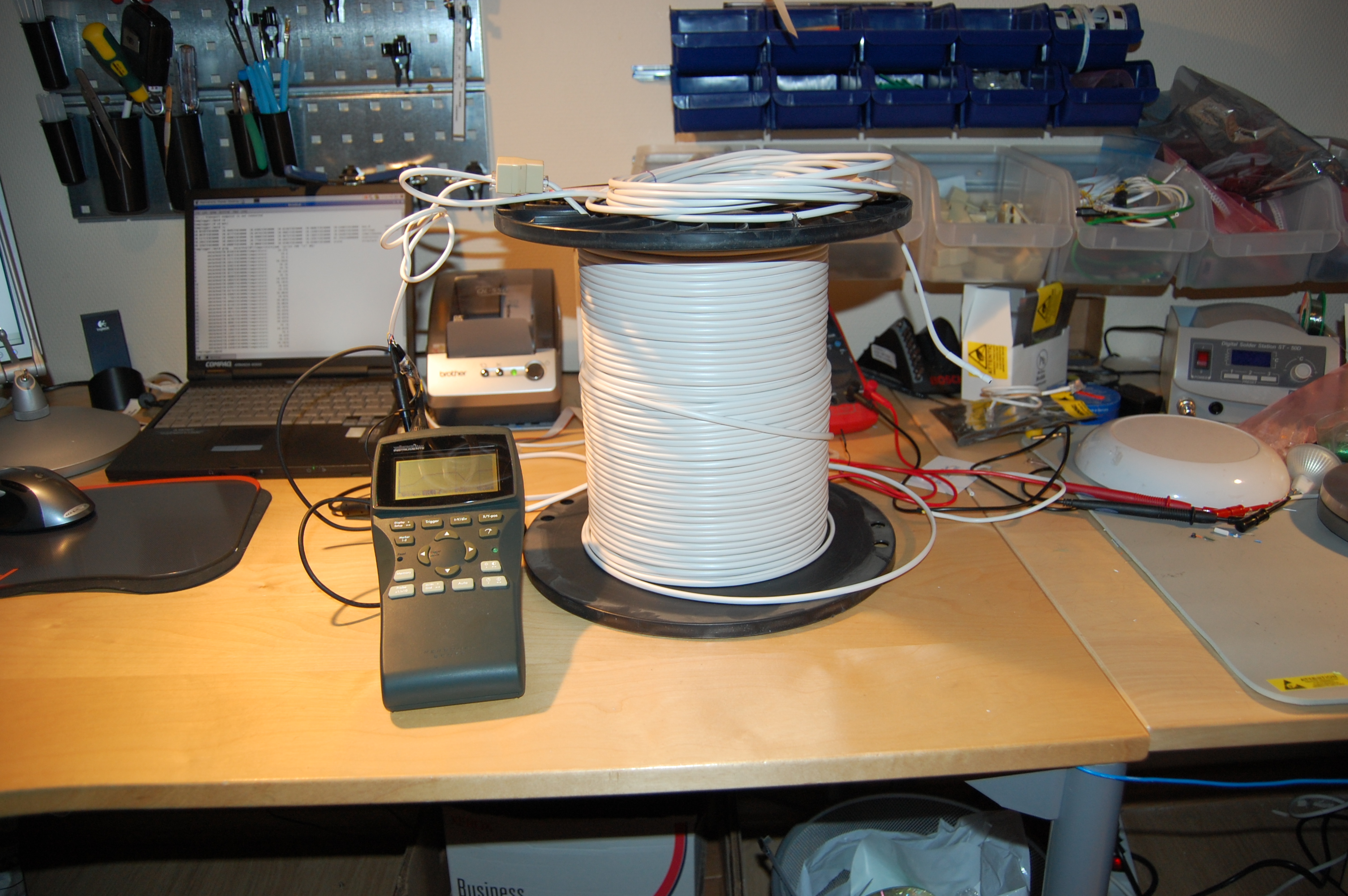En kund har beställt ett par rätt stora temperaturnät och det passade utmärkt att koppla ihop allting (och ansluta ännu mer sensorer/kabel tills nätet inte längre fungerar) till ett nät för att kunna mäta hur signalkvalitetetn förändrades.