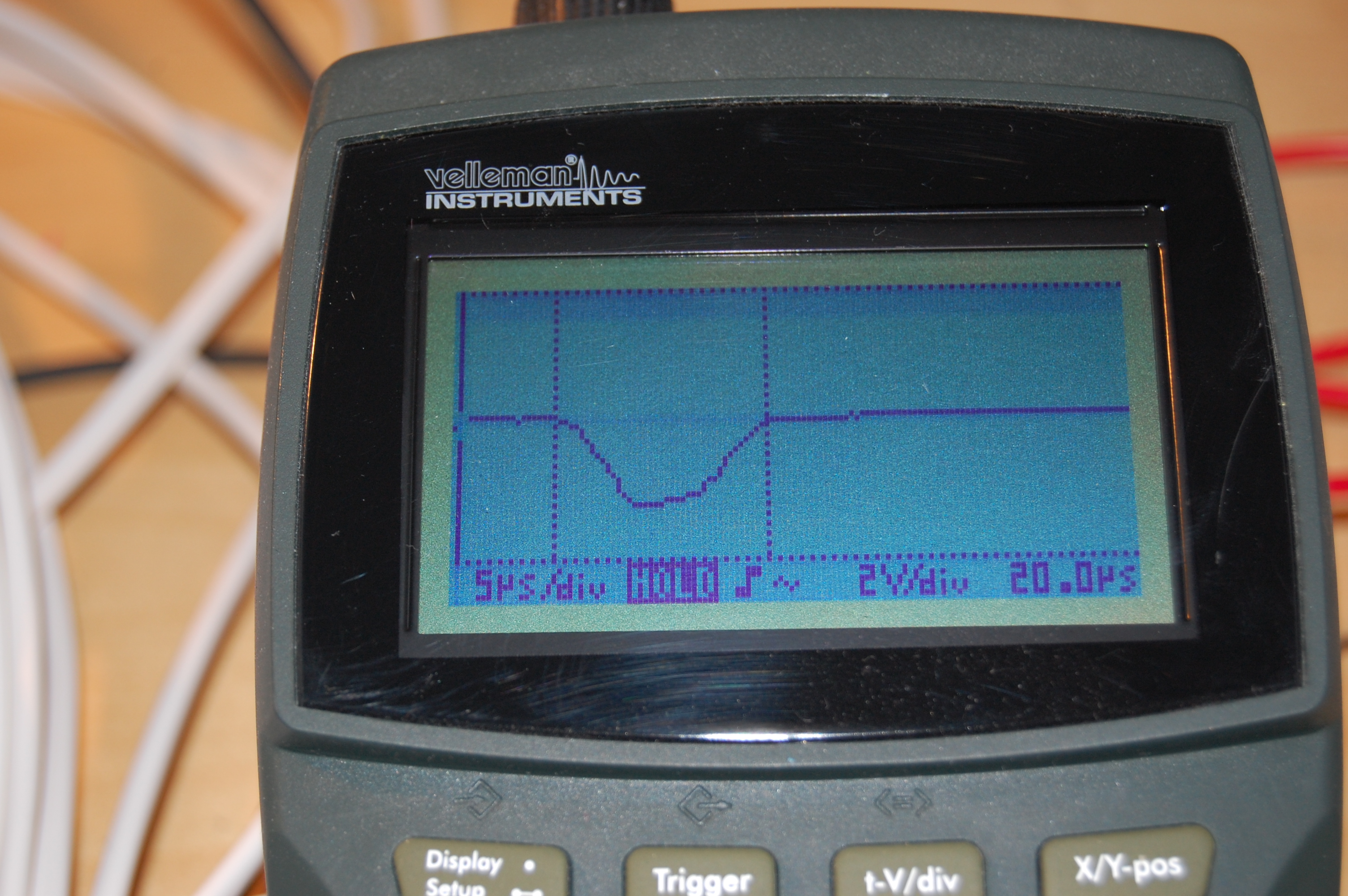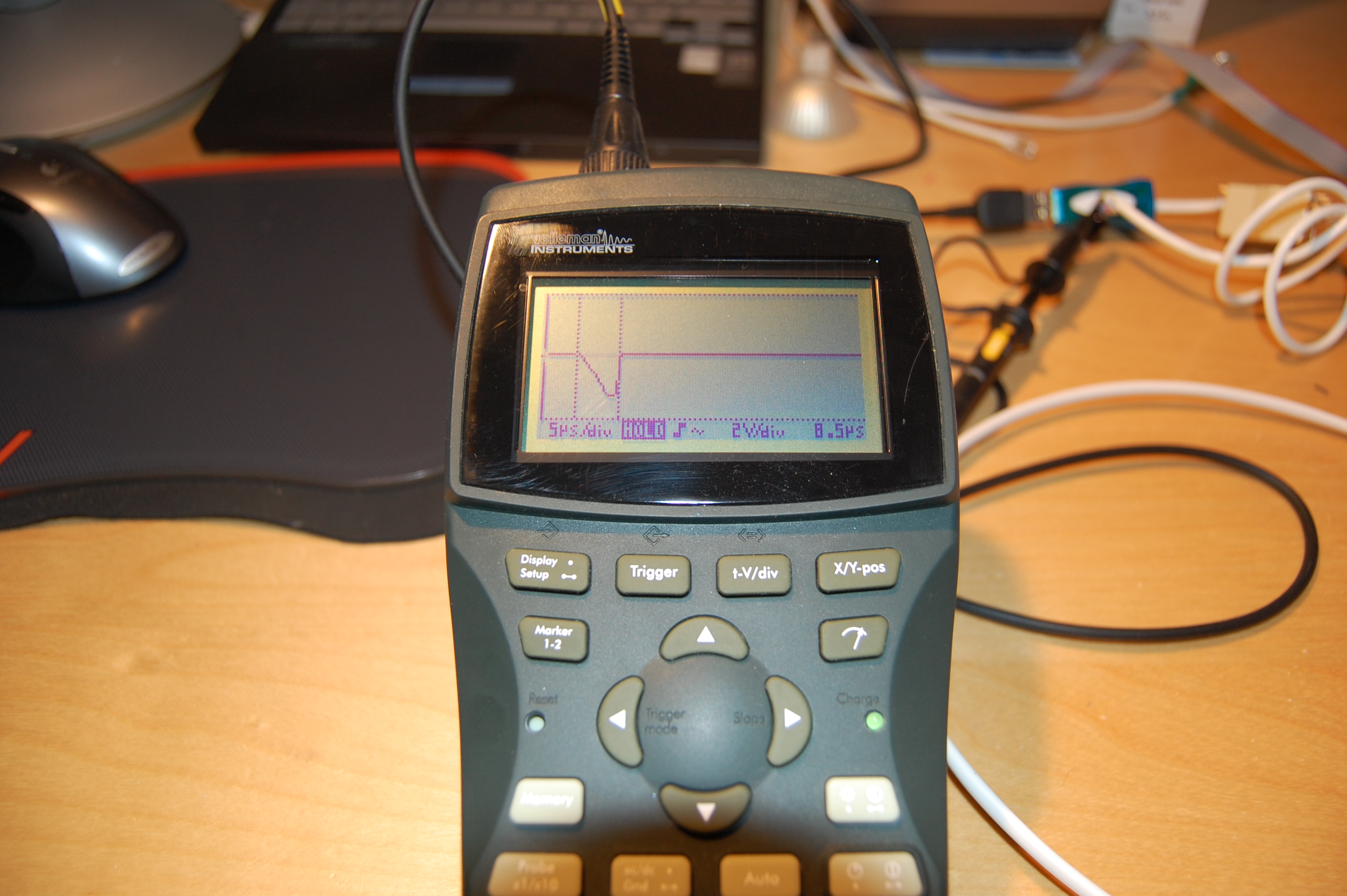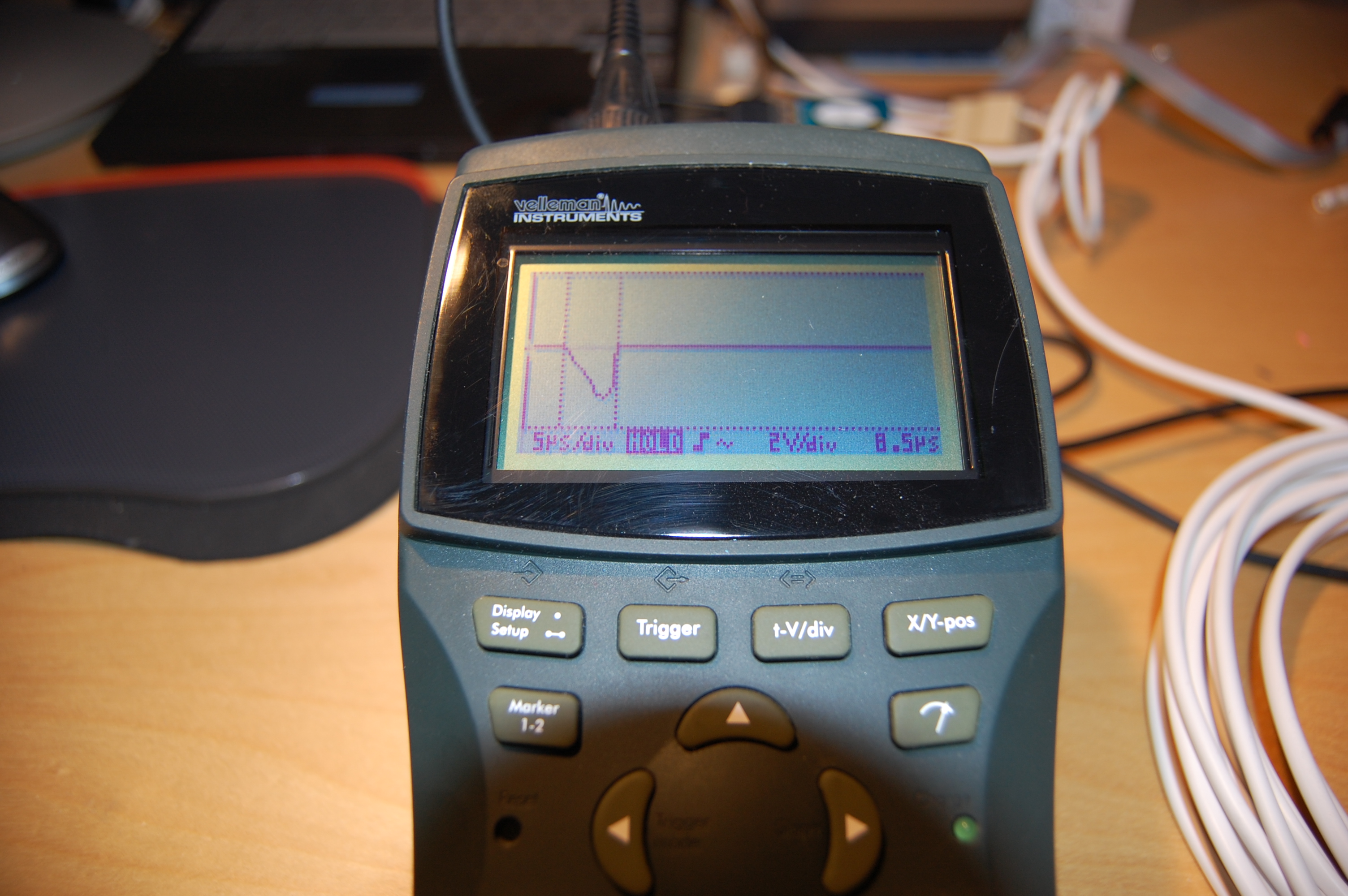 Kommentar: Det fungerar otroligt nog. Trots att tidsåtgången är hela 20µs (33% över tillåten tid) är det inte några somhelst problem att läsa av sensorerna.