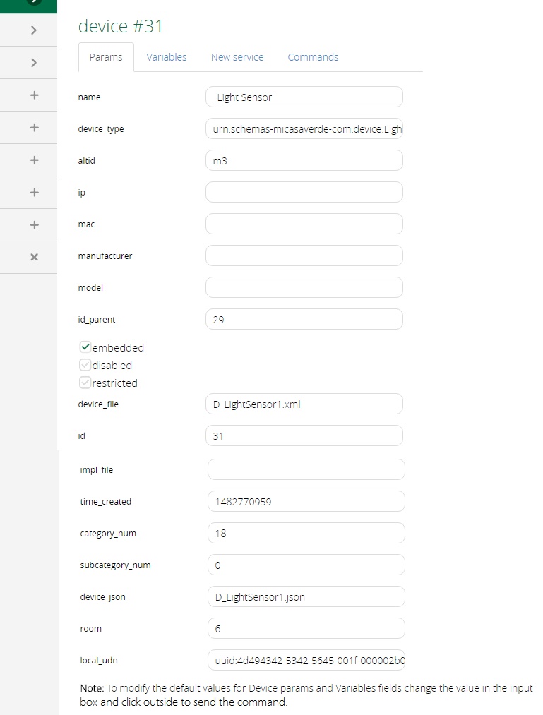 - Dock fattar jag inte hur jag ska kunna lägga till dessa parametrar. När jag via Veran klickar på pilen till höger om "Light Sensor" och på nästa sida klickar på pilen till höger om "Device Options", så är device options-sidan helt tom. Man har ingen möjlighet att lägga till parametrar här. Var lägger man i så fall till dem?