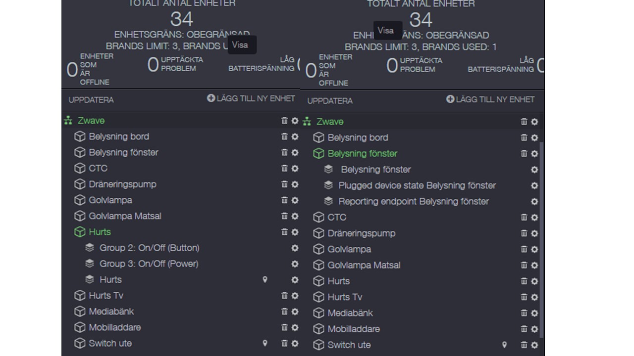 De fungerar och rapporterar förbrukning men irriterande att jag inte har samma layout i gränssnittet i mobil och dator.
