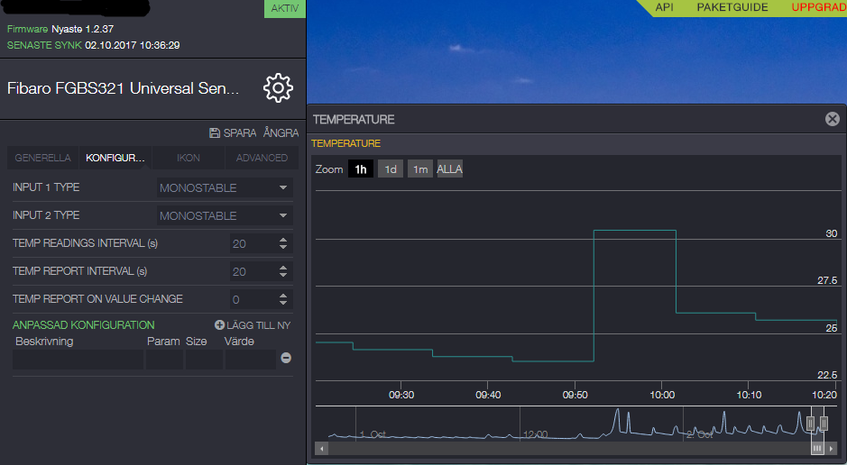 Re: Fibaro Universal sensor - Avläsningsintervall temperatur