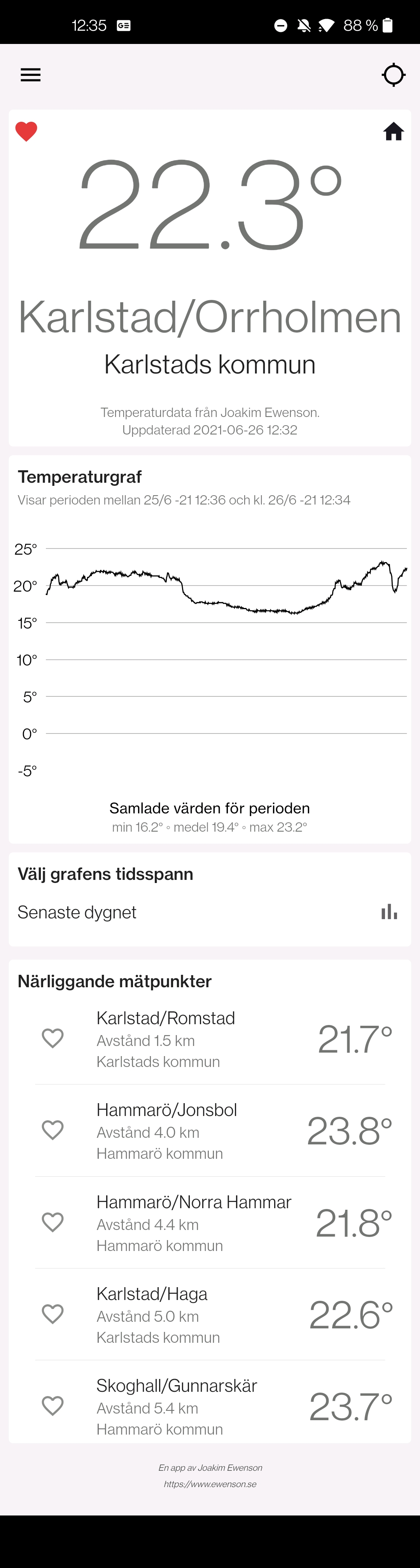 Slutligen vill jag även passa på att tacka temperatur.nu och Erik som har gjort stora ansträngningar med sitt API senaste året, något som gjort stor skillnad i att kunna förbättra min app!