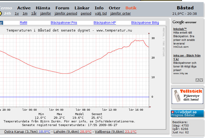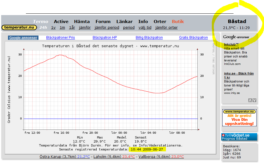 Det verkar som 24 timmars grafen inte uppdateras i närtid på alla stationer. Min egen uppgift, Båstad, släpar ibland flera timmar efter. Tittar man sen på veckografen är den up to date.